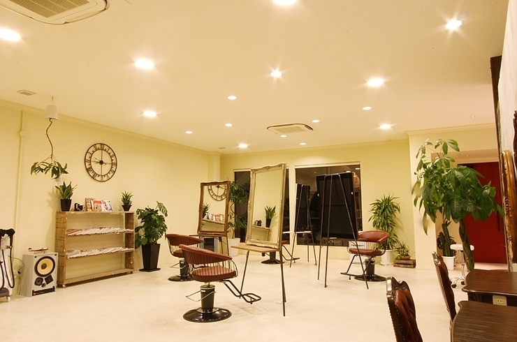 hair salon LOOPは、「お客様がわがままを言えるような店」をコンセプトにした、アットホームな雰囲気の美容室です。ポップでありながら落ち着いた店内で、くつろぎながら施術を受けることができます。