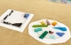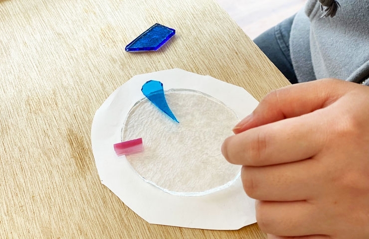 日常でガラスの破片を触ることはないので、なんだかいけない遊びをしている感覚でした(笑)ピンセットも準備していただいているのに、素手でガシャガシャとガラスを選んでいます。