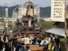 石岡神社祭礼も後半を迎え、新兵衛大橋へ向かっているだんじりが複数。