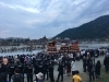 伊曽乃神社に向かうために加茂川を渡って行く神輿を見送ります。