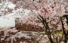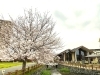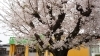 大きな桜の木が何本も咲き誇り圧巻です。花びらがひらひらと散り始めました。