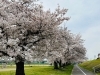 国領川の山根公園近くで撮影しました。一列に並んだ桜が開花していて、とてもきれいでした!