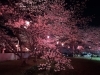 こちらも夜桜です。ソメイヨシノが提灯の赤色に染まっていました。幻想的な雰囲気です。