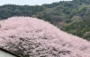 河川敷に大きく張り出すように大木の桜が咲き誇っています。
