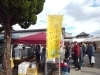 マルシェ入り口! お好み焼き、芋たきブースには早くも列が!