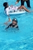 プールに入って、テントの場所をとりました。