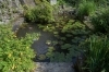 一畳庵の前には睡蓮の池があり、池の周りには多くの花が見られます。