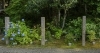 手水舎の後ろも紫陽花の花で満たされており左側には小さな広場もあります。