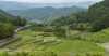 神社を囲む山々や棚田の風景、この地区には白猪滝や唐岬滝、雨滝もあります。