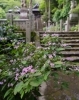 本殿に上がる石段の途中に、お隣の金毘羅寺に向かう道がありますがこちらも山紫陽花に囲まれています。