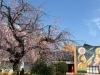 愛媛県西条市のSAIJO BASEでは、春になると美しい桜が咲き誇ります。薄紅色の花が満開となり、訪れる人々を魅了します。背景には宇宙をテーマにしたカラフルな壁画があり、桜の自然美とアートの融合が楽しめます。